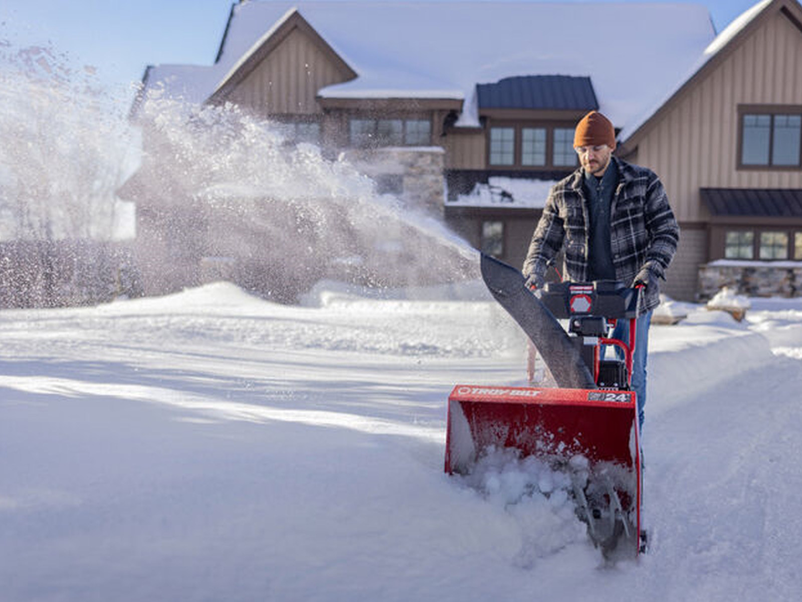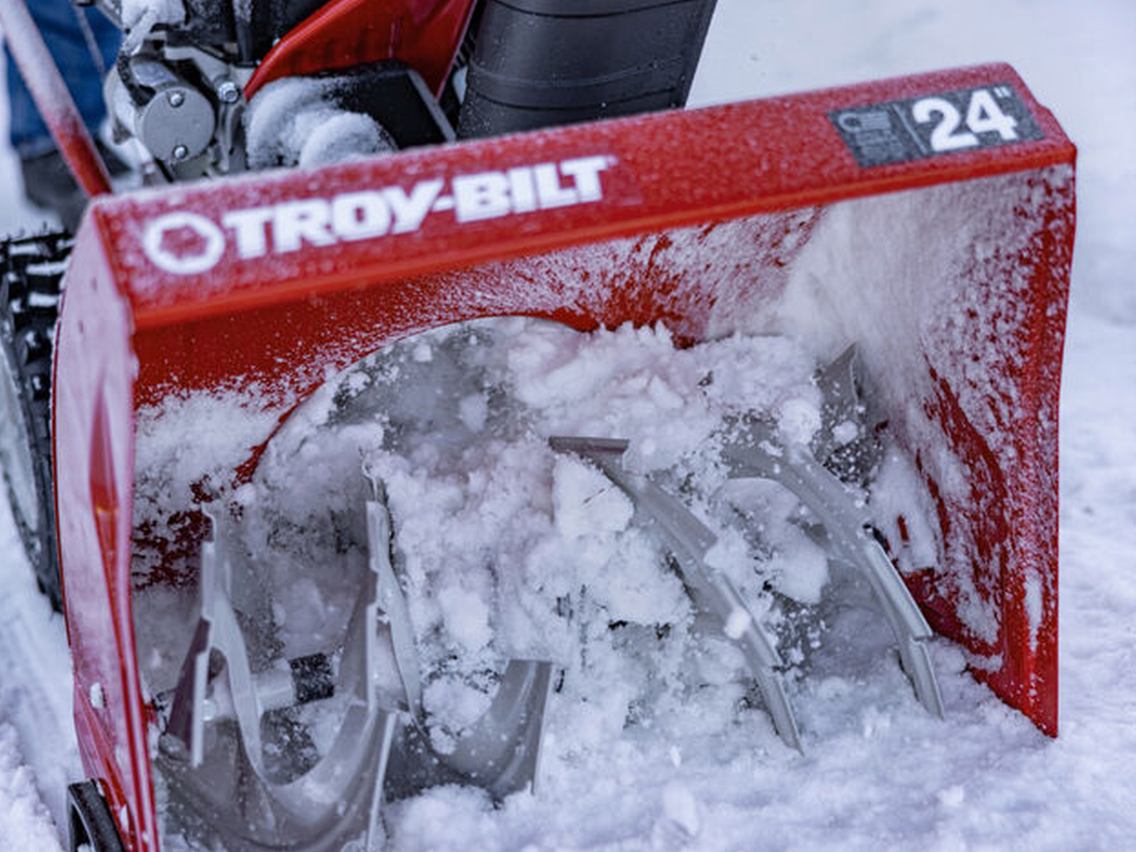 - 24 in. clearing width and 20 in. intake height powers through up to 12" of snow* and designed to throw up to 40' of snow